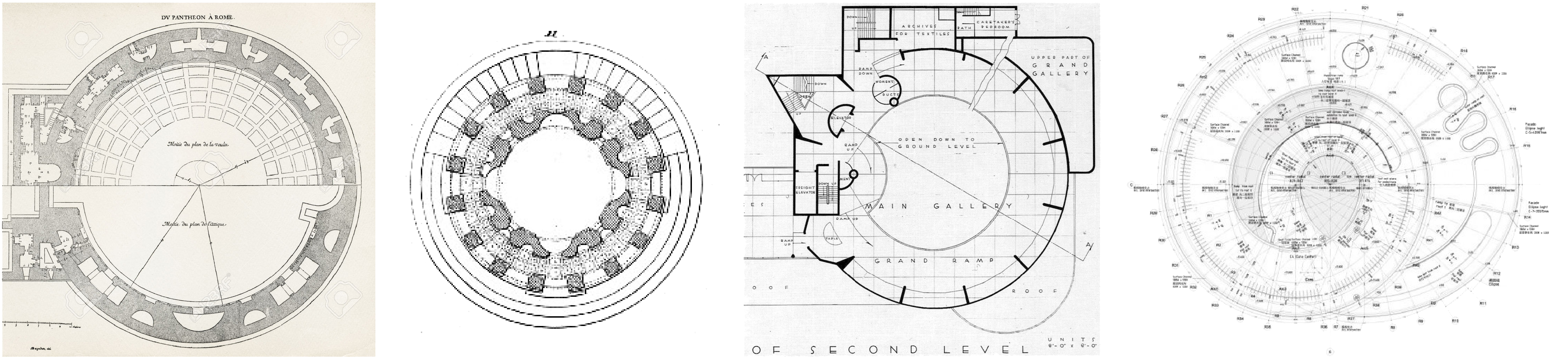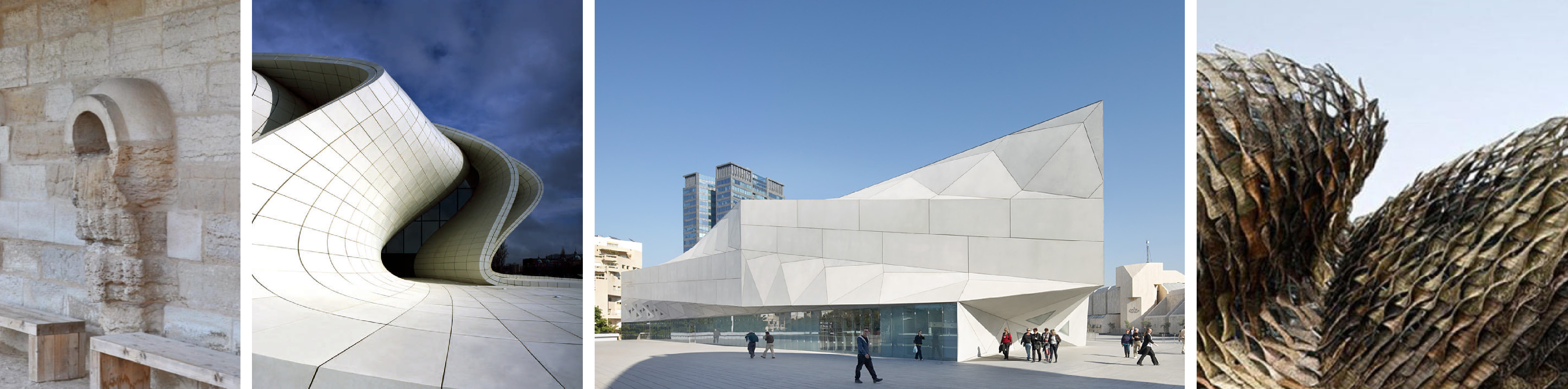 In more contemporary debates, this very same issue arises in the context of buildings whose main trope is the continuous surface, where the purported seamlessness between floors and walls are called on to challenge our perception of architectural conventions. Since seamlessness is more of a rhetorical device, and not actually aligned with the ways in which things are built, the construction seam actually takes on a more charged role in establishing the very part to whole relationship that gives shape to buildings. By way of example, Zaha Hadid’s Heydar Aliyev Center adopts a generic construction unit that is, in fact, parametrically malleable –and thus subservient to the formal flourishes at work. In effect, the unit is indifferent to the form. Instead, the Tel Aviv Museum of Art by Preston Scott Cohen, displays the struggle between the configuration of the panel types and the geometry of the figure of the building, demonstrating the tension between the generic and eccentric. In effect, the building’s figure is in negotiation with the very block types adopted in forming it –- as it turns out, the result of optimization in the manufacturing process. A slightly different approach is displayed in Tagliabue’s Spanish Pavilion at the Shanghai Expo, where the generic wicker panels are organized with a shingling process that offers a geometric tolerance such that they are able to navigate compound curvatures without the need for a consistent dimensional resolution at their connections. In all cases the persistence of aggregation is the measure of the architectural challenge in gauging continuity where the actuality of construction limits are the ultimate constraint.
