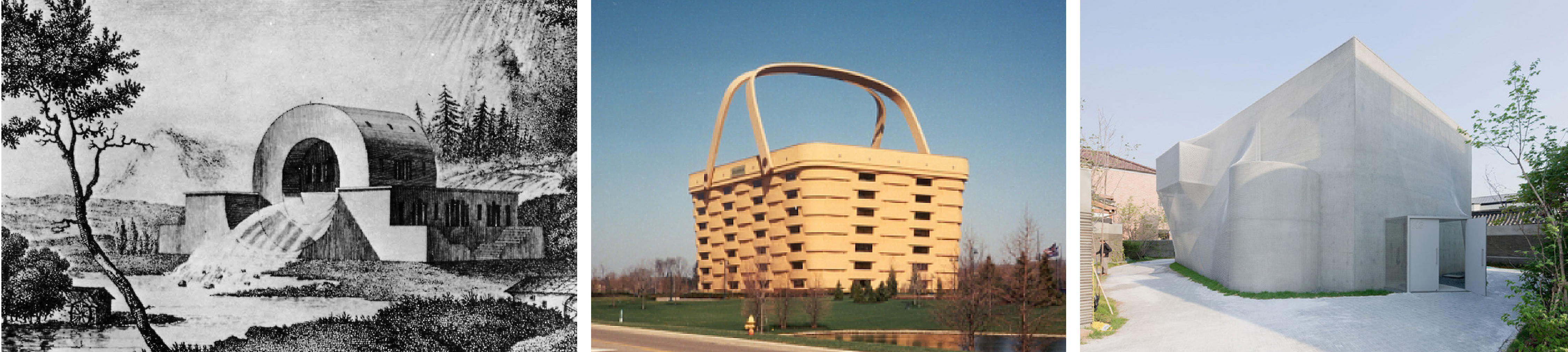 Consider the five points of Le Corbusier and the way in which they can be deployed in a variety of ways between the Villa Savoye and Chandigarh Parliament– identical as systems, but distinct in final description, this the result of the configurative play of parts. Alternatively, consider the overt play of figural manifestations in Ledoux’s Water Inspector’s House, where the a priori formal gesture gives bias to the semantic play of the hydrological passage, rather than the breakdown of discreet parts. If Architecture Parlante provoked the power of signification, in later years, it was also reinforced by a more inclusive theoretical landscape as is evident with Venturi’s essay on the duck and the decorated shed. However, its more recent deployment in buildings such as the Basket suggest a crisis that is latent in the mission of figuration: namely that once architecture is stripped of the layering of its multiple narratives, it is then summarily reduced to a one liner—prevented from releasing further readings, engagement, or performance of any kind. Such was the legacy of the more figural works of post-modernism, where the overt references to iconic tropes were reducible to empty quotations and desperate attempts at historical legitimation. However, the re-emergence of the figural bias seems to have rekindled as of late and the manifestations of the diagram on the skylines of various cities remind us of the danger of the literal that lurks in the figure.final image ribbons3a