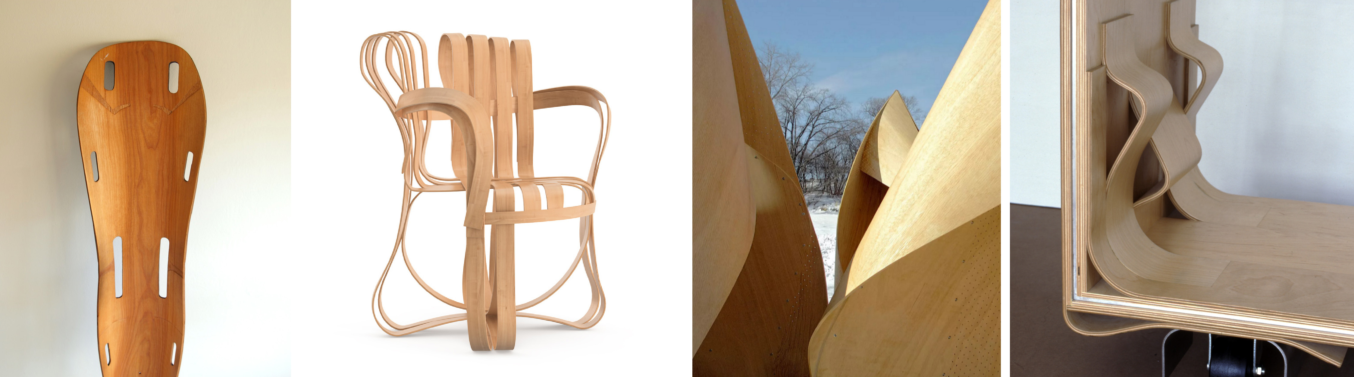 Charles and Ray Eames’s research on plywood is another exemplary piece of work that has informed a range of other subsequent contemporary experiments ranging from Gehry’s furniture to the Patkau Skating Shelters. In each case, the formal behavior of wood becomes a direct medium through which formal malleability is gauged. In the case of the Eames leg splints, the negotiation between the grain of the wood, on the one hand, and the formal alignment of the splint with the leg, on the other, produces a tension that results in particular incisions, gaps and lap joints that reconcile the two modalities of programming in the design. Here, the tell-tale detail is borrowed from the sartorial trade; a dart is introduced, if only to enable some form of mediation between the figure of the leg and the configuration of the wood pieces.