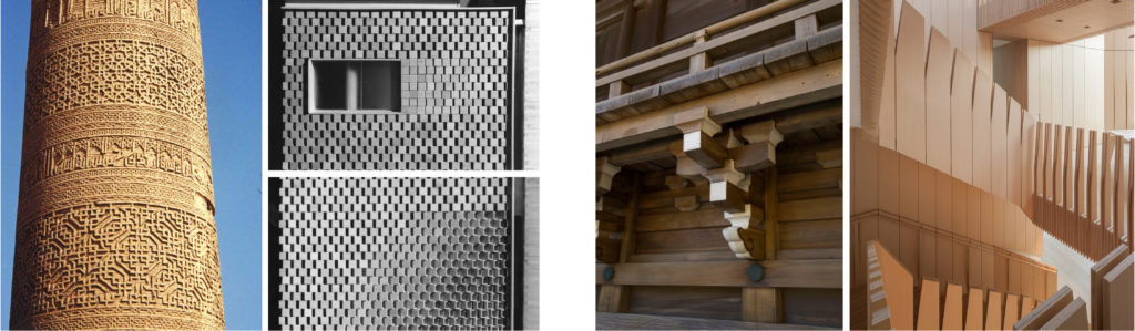 The idea of an architecture that establishes a relationship between part-to-whole can be cited back to antiquity, with the various formulations of the Classical language as the manifestation of reciprocities between architectural elements when they speak to each other in materiality, proportion, function and expression. This is certainly not reducible to the Classical tradition, as we can see articulate evidence of this in both near and far eastern architectures also. Consider the masonry work at the Minaret of Saveh of the Seljuk Period, or the timber construction of Kamakura’s Goryo-jinja Shrine; both examples advance an idea about the singularity of a material technology that is able to advance the structural, spatial and organizational framework of an architectural enterprise. Maybe what is equally remarkable about these examples is the degree to which they are stubborn about the disciplining of constraints that guide the rigors of their respective tectonic make up. The bonding pattern of brick walls, the stacking of timber members, and the refusal to escape from their material medium is but one way of demonstrating the degree of versatility that the process of aggregation requires in an act of construction.final image ribbons2